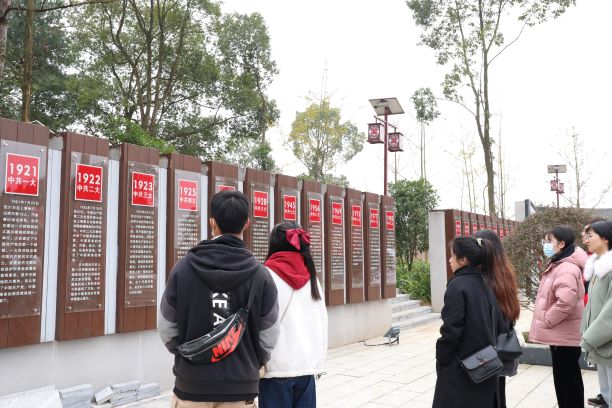 全体学生党员跟随着徐峰老师和马杰老师的步伐参观红旗广场,在这里学习党史、新中国史、改革开放史和社会主义发展史。观看人物浮雕,重温入党誓词,系统全面的学习党的光辉历史与精神。