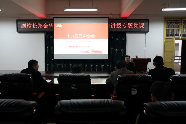 12月9日下午,副校长郑金华以《全面建成小康社会/开启全面建设社会主义现代化国家新征程——中国共产党第十九届中央委员会第五次全体会议概况解读》为题,在计算机楼312会议室为人事处、期刊社、协同创新中心等部门和学院的教师党员上党课。