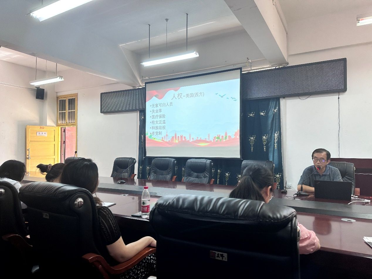 2023年6月19日下午三点,我院教工党支部于计科楼312会议室组织所有教师党员开展以“坚持走中国特色社会主义道路”为主题的党课。