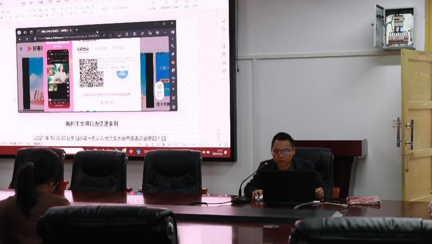 活动伊始,教工第一党支部书记陈文辉带领党员干部学习《衡阳市文明行为促进条例》。通过普及文明行为常识、总结文明行为规范、不文明行为治理;并指出党员同志应当在文明行为促进工作中发挥先锋模范作用,自觉做到守规矩、讲文明、引群众、促新风,助力推进我市争创全国文明城市工作。