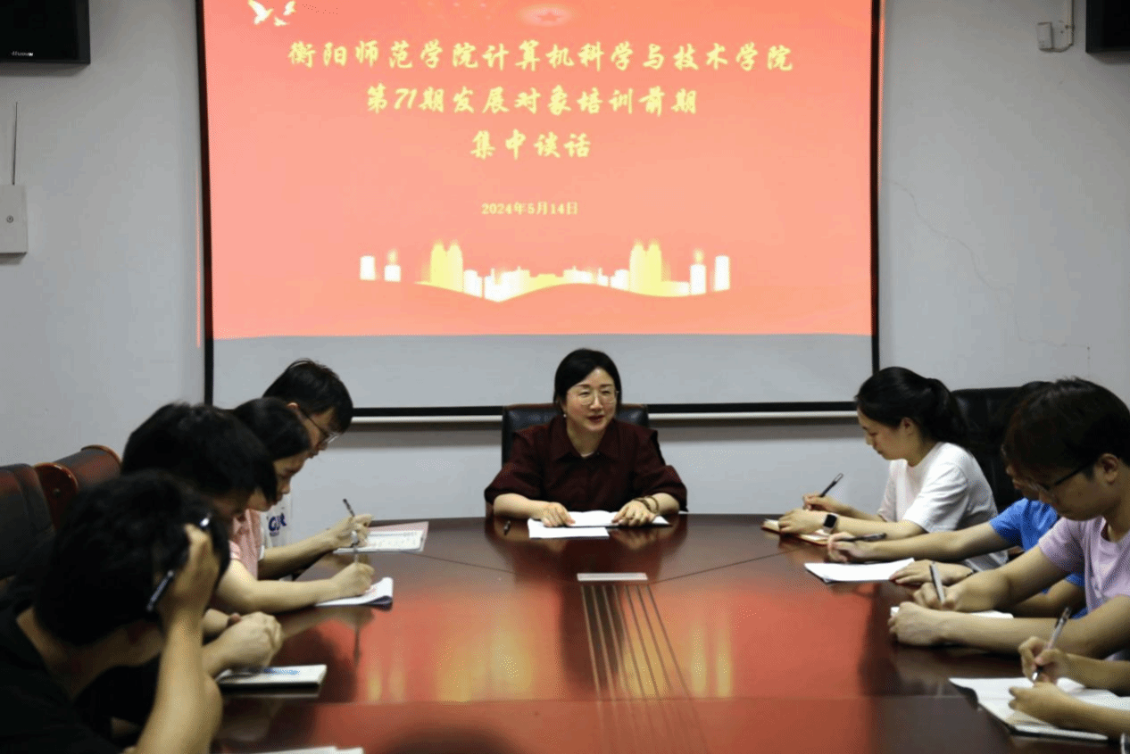 为进一步加强基层党组织建设,做实、做细党员发展工作,确保发展党员工作的系统性,帮助发展对象端正入党动机,夯实思想基础。5月14日19:00,我院党总支在计科楼506党建会议室组织第71期发展对象开展集中谈话。我院党总支书记何志红、研究生党支部书记陈小燕以及20名发展对象参会。