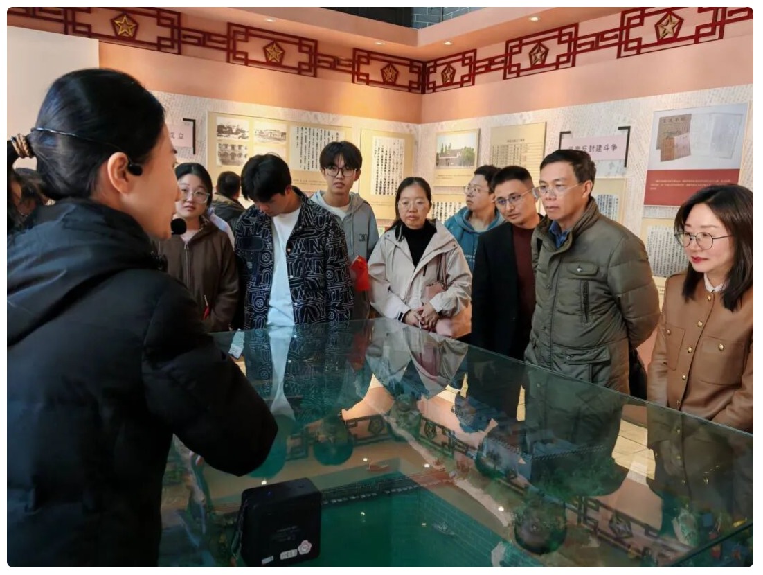 活动伊始,全体人员步入纪念馆。循着讲解员的引导与生动讲述,大家仔细观看展厅内陈列的历史文献、珍贵照片与实物展品,凝神聆听革命先辈们为追求真理、救国图强而发起学生运动的峥嵘往事。一段段生动的文字记载、一幅幅厚重的历史影像,将那个风雨如晦年代里青年学子们的热血与担当清晰地呈现在眼前。党员们不时驻足交流,深刻感悟着湘南学联作为湘南地区革命策源地所承载的红色精神与时代价值。