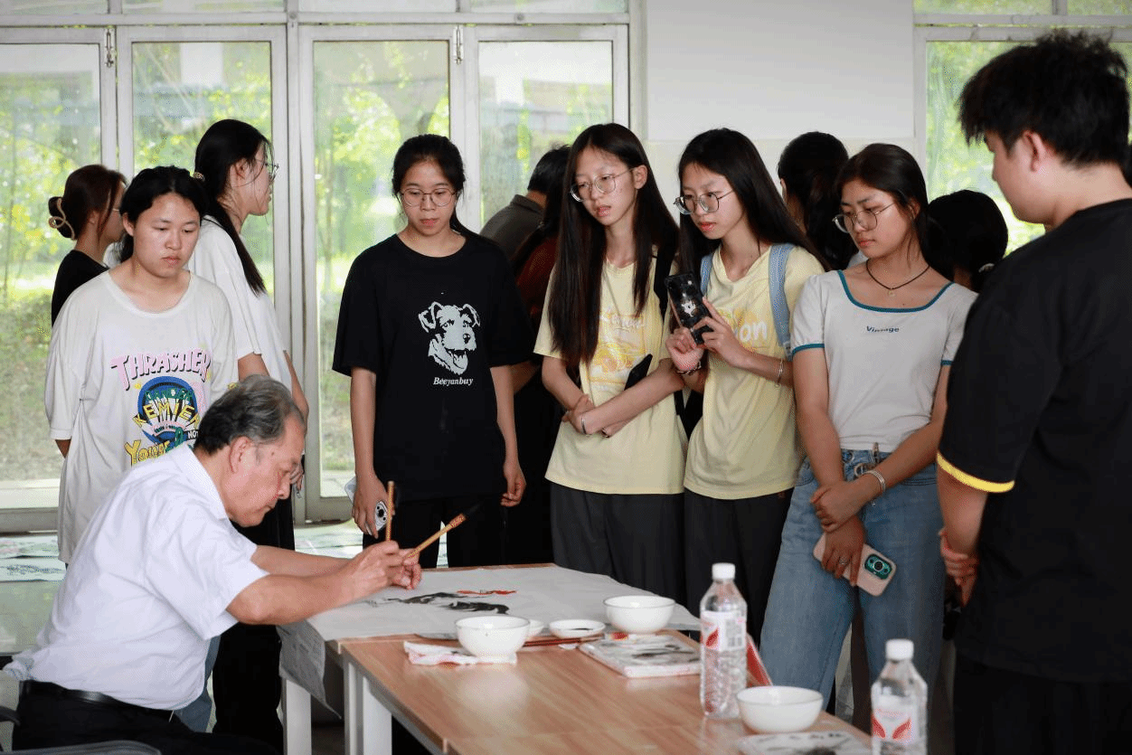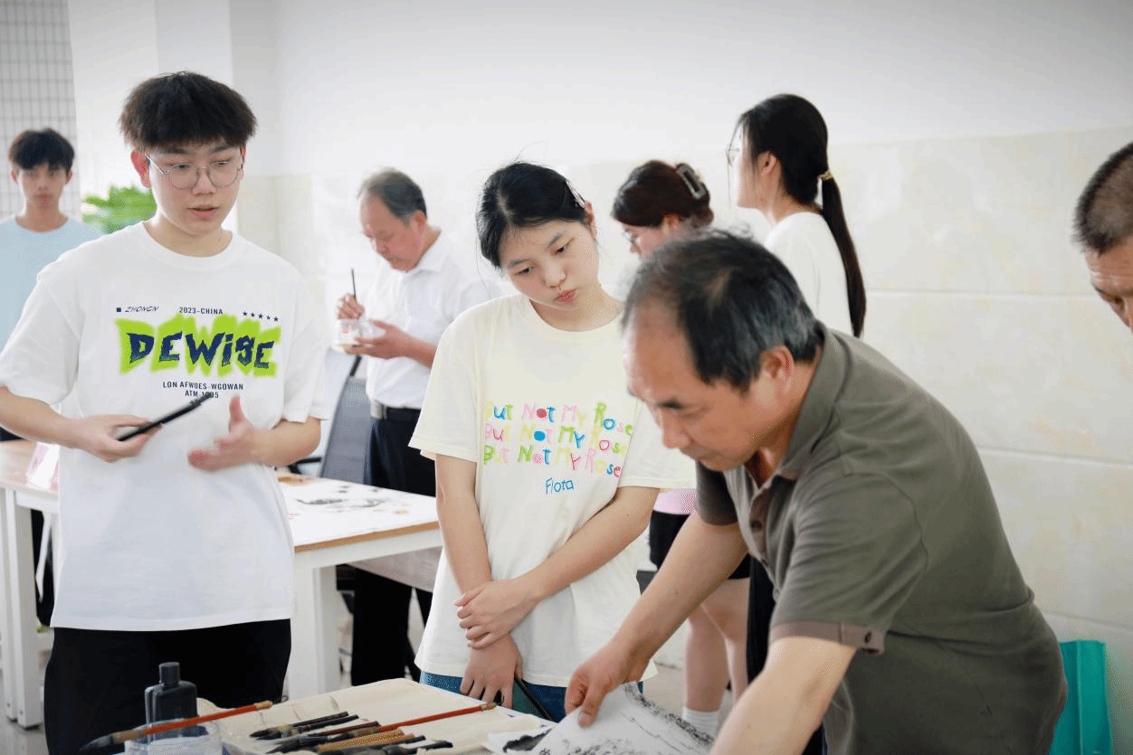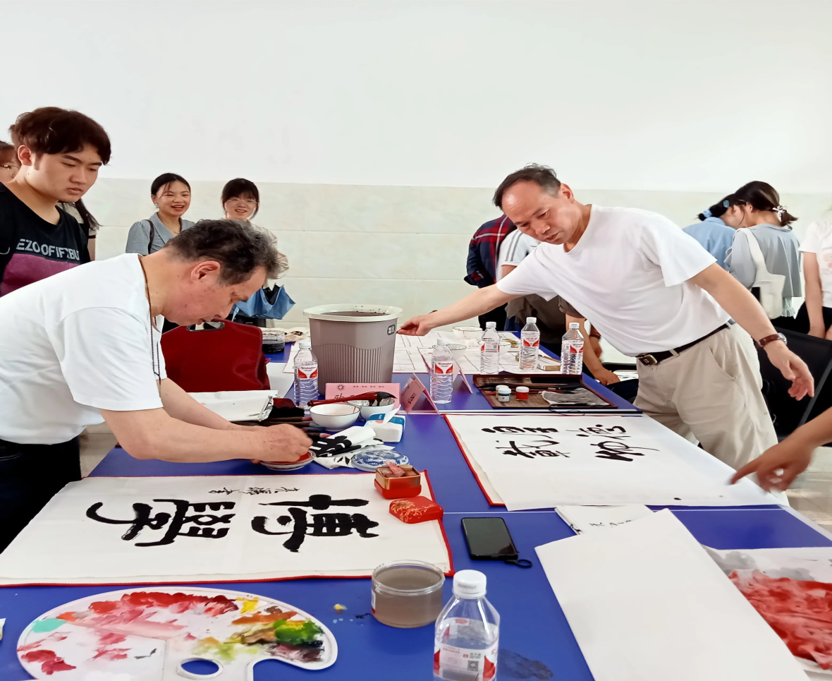 活动现场,丹纸铺就,翰墨飘香,老师们挥毫泼墨,笔走龙蛇,为学生示范作画,一幅幅精美的丹青画作在他们的笔下勾勒,或大气磅礴、或精巧秀丽、或笔墨精妙,承载着深厚的文化底蕴。同学们“零距离”观摩老师们创作,认真学习写书法、作画的技巧与方法。在老师们的指导下,学生们拿起毛笔,一笔一画,劲头十足,现场书香味浓郁。