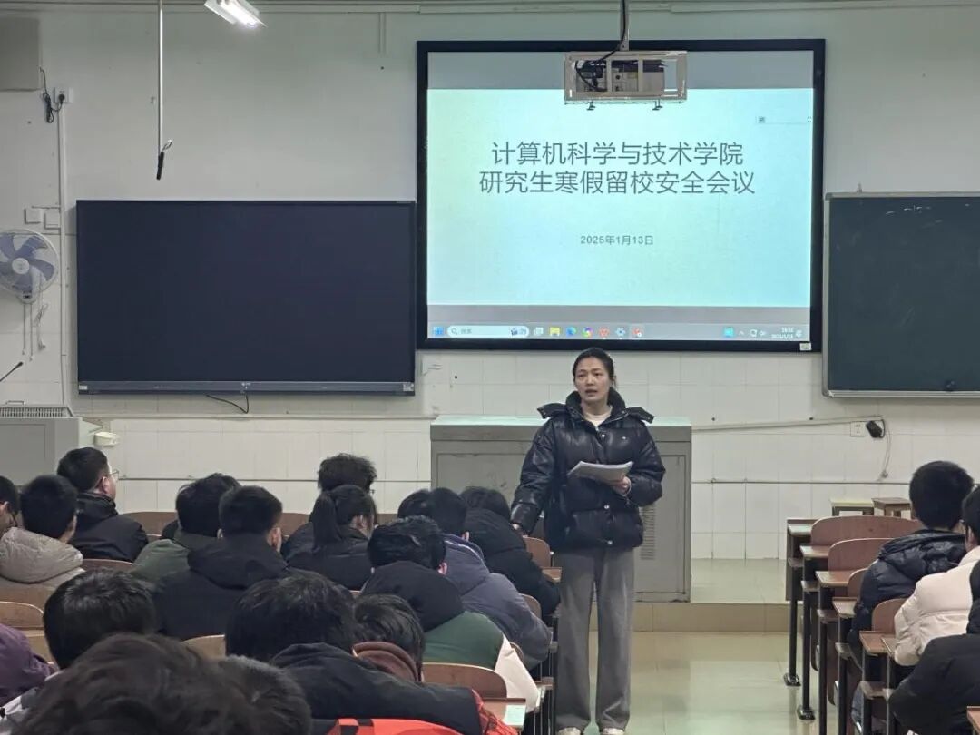 为切实做好寒假留校研究生的安全教育工作,提高留校学生的安全防范意识,2025年1月13日晚上,伟德国际1946在计科楼211召开寒假留校研究生安全工作会议。本次会议由辅导员陈小燕主持,全体留校研究生参加了会议。
