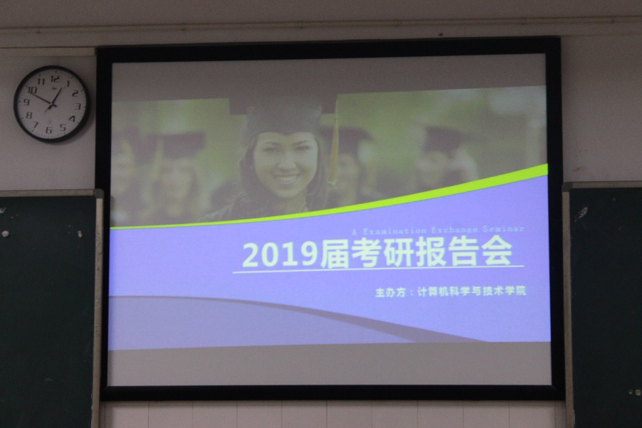 2019年4月29日中午12点50分,我院在计科楼209室举办2019届毕业生考研交流报告会,莅临本次报告会的领导有我院党总支书记陈洪清、党总支副书记彭正以及辅导员谢媛,本次报告会由夏娇娇主持。