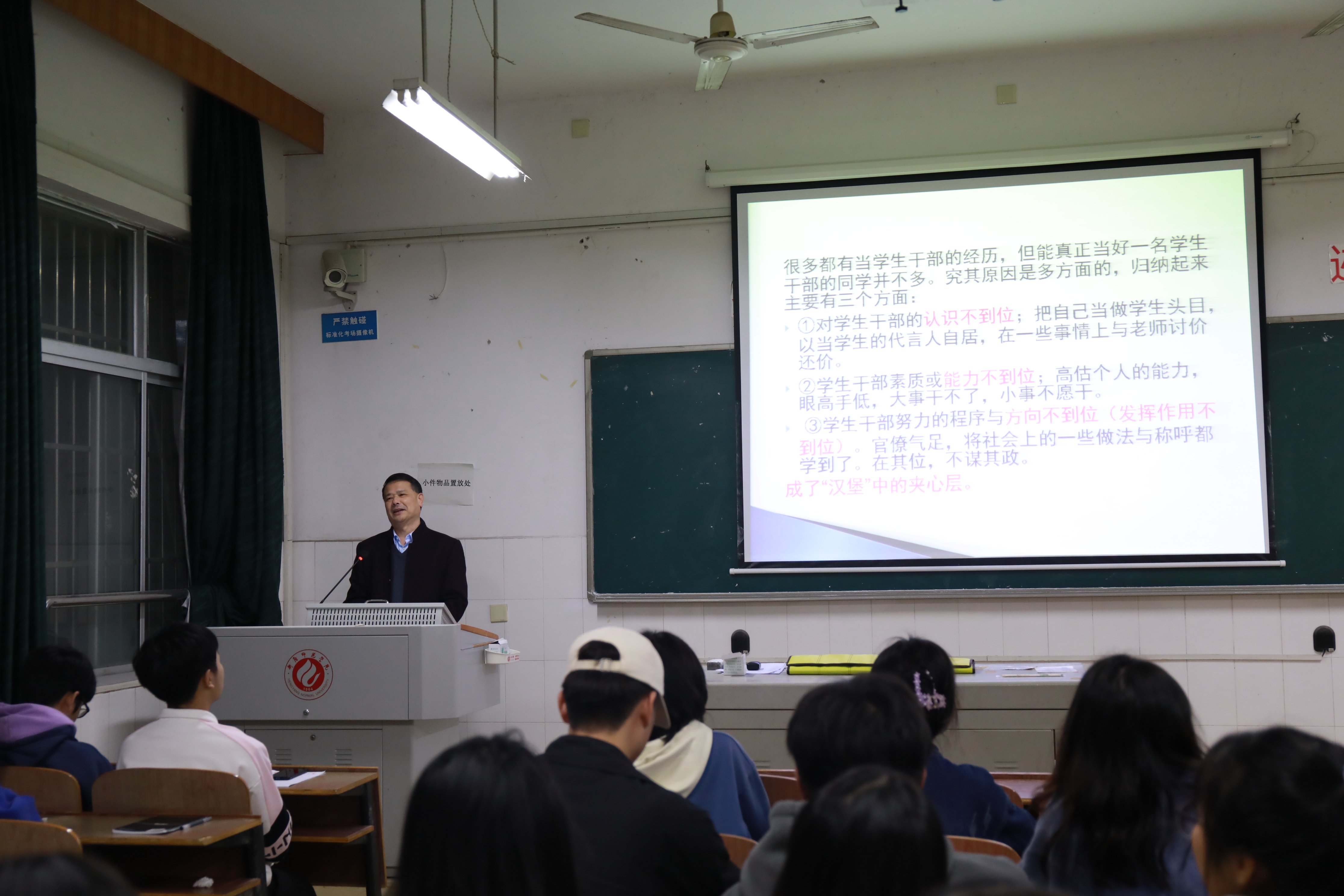 单丝不成线,独木不成林。为增强学生干部队伍的凝聚力与向心力,提升学生干部队伍的能力素养,培养团队责任感、荣誉感。我院于11月7日晚6时50分在计算机楼118会议室举办学生会素质拓展讲座培训讲座。我院党总支书记陈洪清、党总支副书记彭正结合学院现状,针对学生会干部的能力培养方面,分别做了题为“守初心,担使命,切实增强为师生服务能力”和“提升能力素质,发挥引领作用,做优秀学生干部”的讲座。