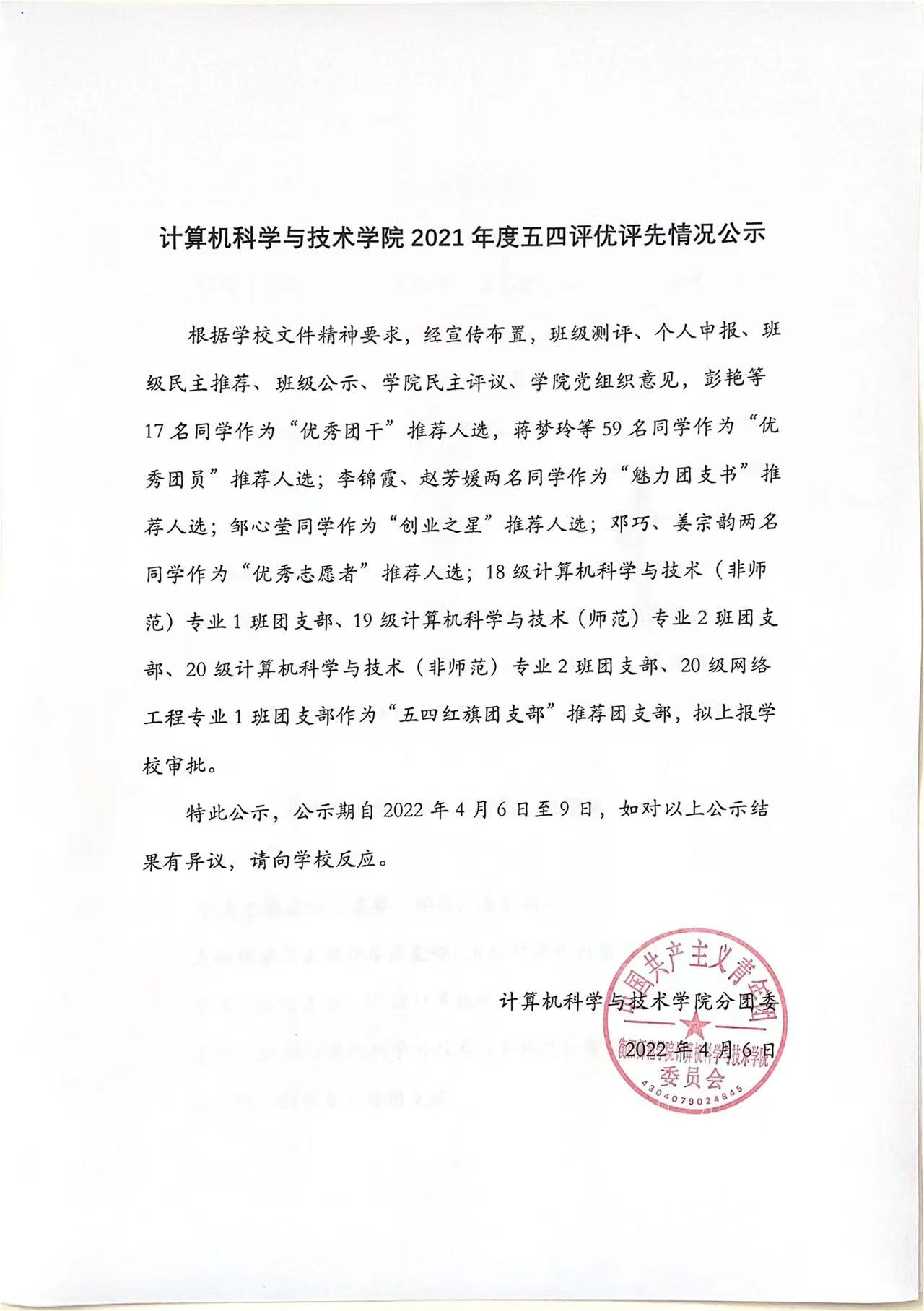 伟德国际19462021年度五四评优评先情况公示