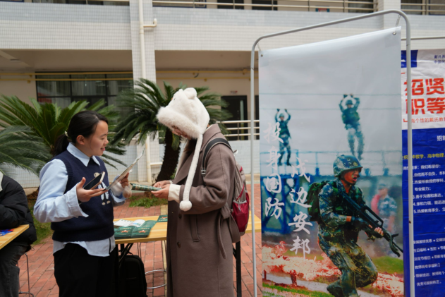 为厚植青年学子家国情怀,引导计算机专业人才投身国防事业,2024年12月27日,我院以毕业生招聘会契机,在计科楼前厅组织开展了组织开展2025年征兵宣传月活动。通过“宣传册交流+沉浸式互动+精准化对接”三维宣传模式,将征兵动员与专业特色深度融合,现场吸引多名学生参与,掀起“携笔从戎、代码报国”的热潮。