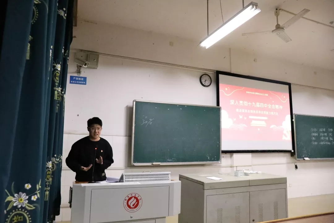 为提升入党积极分子政治思想觉悟,把握国家政策方针,深入贯彻十九届四中全会精神。2019年11月25日晚七点半,我院面向2017级全体入党积极分子,于计科楼215教室组织开展了以“推进国家治理体系和治理能力现代化”为主题的党课学习活动。本次党课由我院学生第二党支部党员周泽阳主讲。