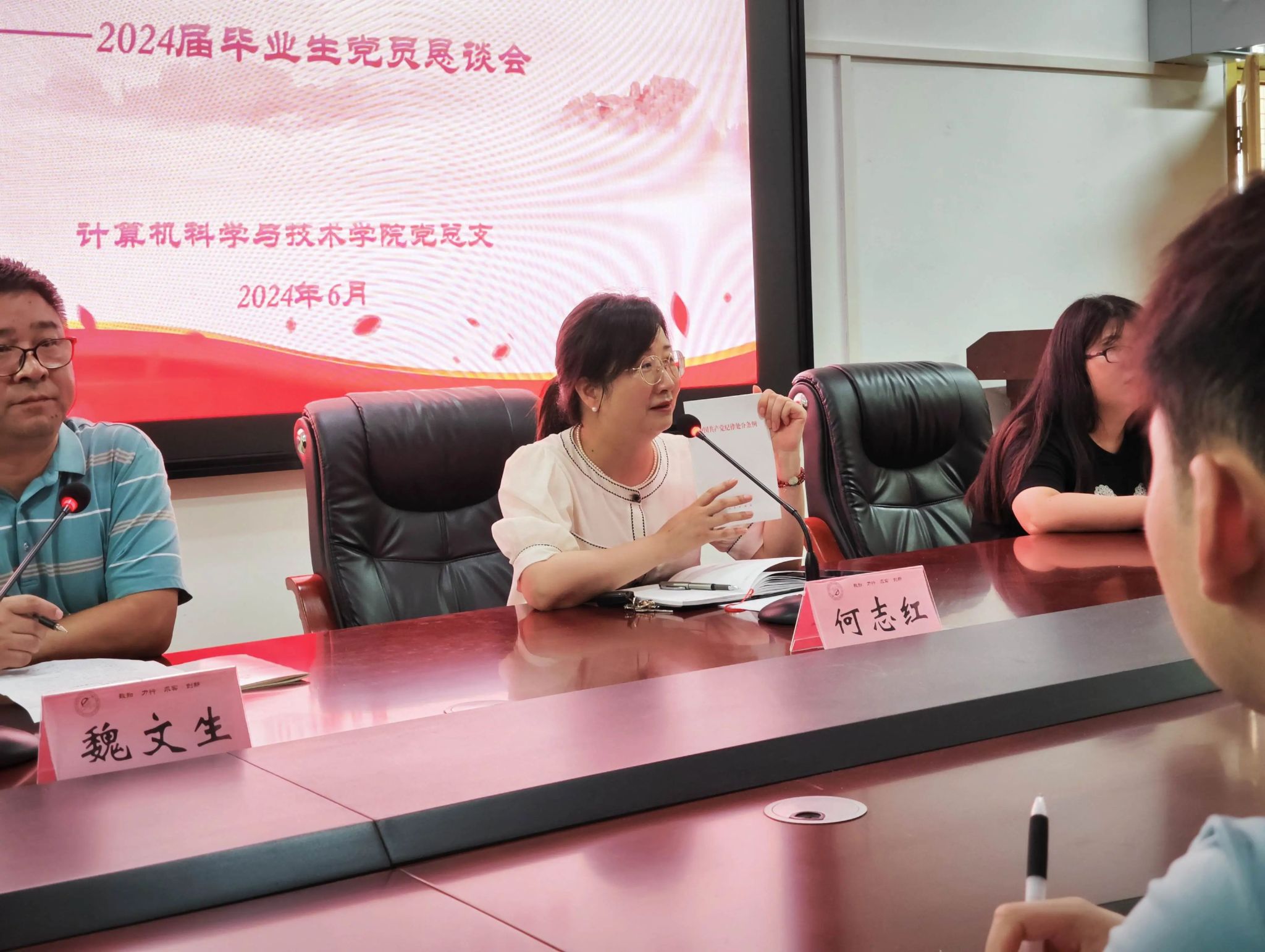 最后,何志红书记对此次会议进行总结并寄语毕业生党员们:一、到党和人民最需要的地方去,时时有党员意识,贡献意识,在奉献中成就自我;二、树立正确的人生态度,多做成长、成就自己的好事、善事,不断提升个人能力,在自己的工作岗位上积极担当、有所作为;三、心怀感恩,不忘来时路,做到守正创新,行稳致远。