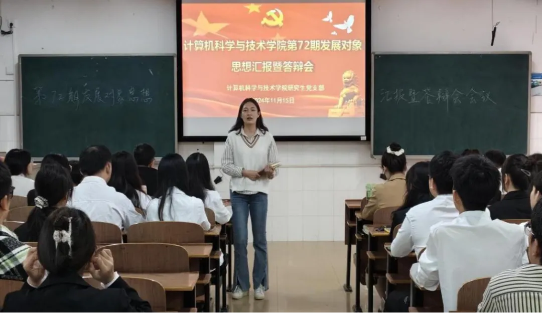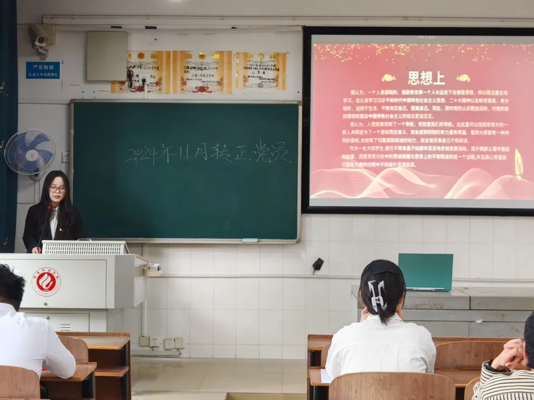 谈话结束后,预备党员们依次进行思想汇报和现场答辩。他们真诚地分享了一路走来的经历以及在党组织悉心培养下内心的深刻感受和成长收获。在这一环节中,能深刻感觉到每一位预备党员在思想上的成长以及对党组织深深的热爱与忠诚。在紧张的现场答辩环节,预备党员们以扎实的知识基础和积极向上的态度出色地完成了答辩,展现出了较高的政治素养和应变能力。
