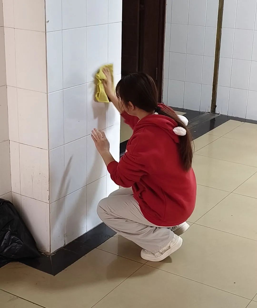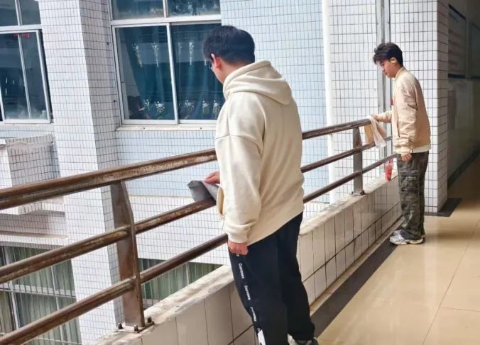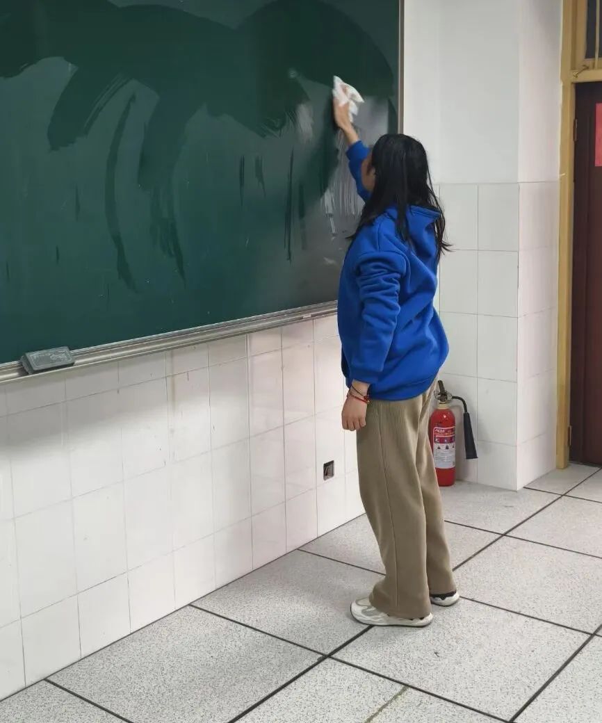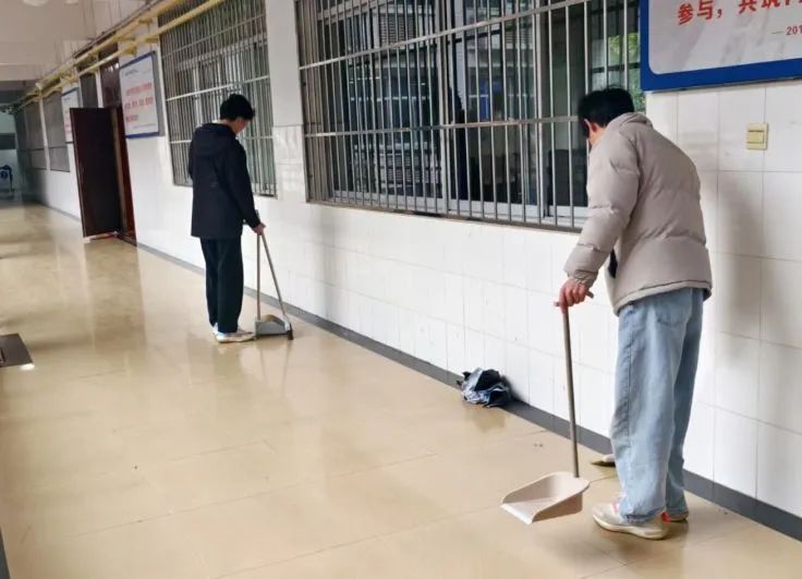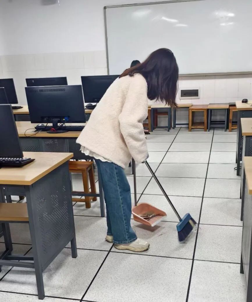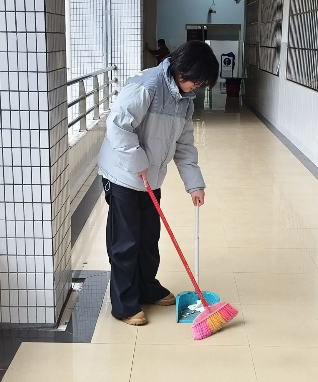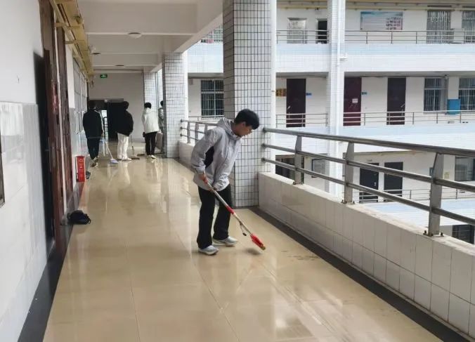 活动当天,全体参与学生准时集合,在负责人的统筹安排下分组行动,迅速投入到紧张而有序的劳动中,对教学楼内的走廊、教室、卫生死角等进行了全面清理。活动中,同学们分工明确、协同合作,认真细致地清洁教学楼的每一个角落,充分展现出“不怕苦、不怕脏、不怕累”的奉献精神。经过数小时高效有序的劳动,教学楼环境焕然一新。