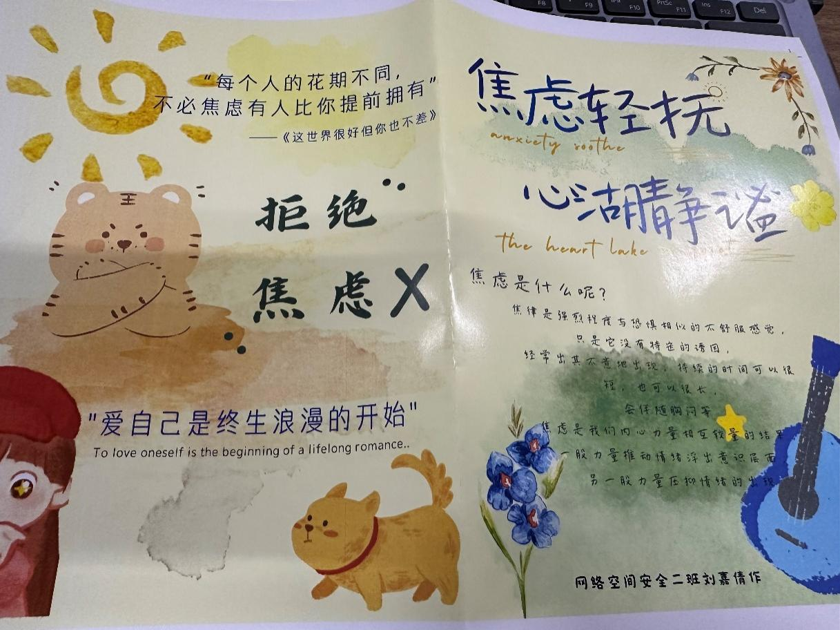 在此次活动中,一共有50余位同学参与心理健康手册的制作,作品数量多,种类丰富,设计精美。通过此次活动,同学们学习了心理健康知识,增强了自我心理健康意识,培养了良好的心理素质,丰富了大学生活。