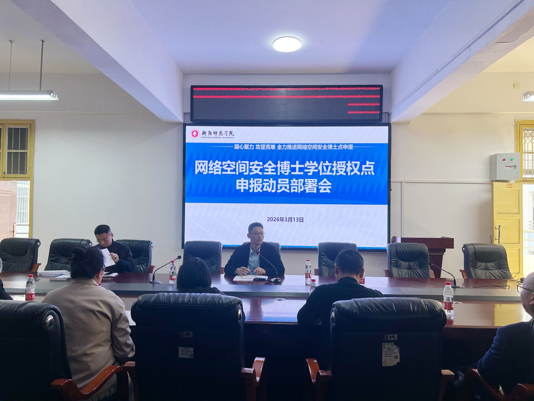 会上,赵辉煌副院长指出目前我校已成功获批为湖南省立项建设的新增博士学位授予单位,新增网络空间安全博士学位授权点对提升学院办学层次、优化学科布局、增强核心竞争力具有重要意义,网络空间安全博士点申报要在前期学位点建设的扎实基础上,持续发力,对标对表,部署下一阶段博士点申报准备工作。