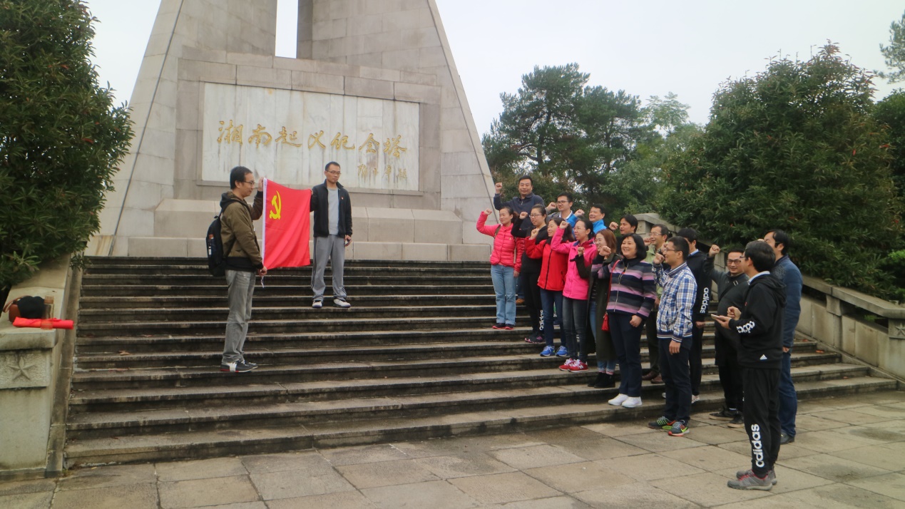 2017年11月11日,在党的十九大胜利闭幕之际,我院全体老师党员开展了以“不忘初心,砥砺奋进”为主题的党日活动,来到了湖南郴州湘南起义纪念园,一起重温历史,缅怀先烈。