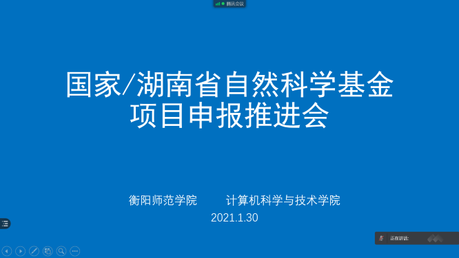 2021年1月30日上午9:30,我院召开了2021年国家自然科学基金与湖南省自然科学基金项目申报线上推进会。郑金华副校长、李浪院长及我院大部分教师、研究生参加了此次推进会,会议由我院赵辉煌副院长主持。