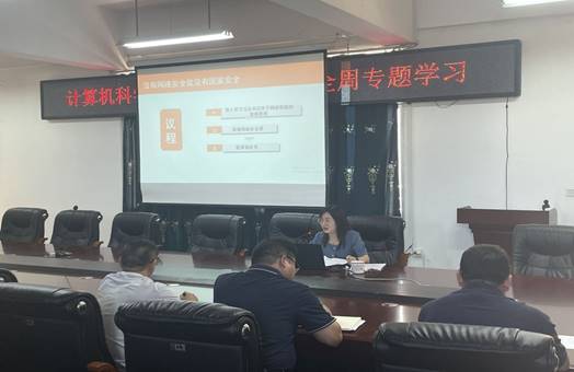 活动期间,学院开展了主题为习近平总书记关于网络强国的重要思想的专题学习,由我院党总支书记何志红介绍了党的十八大以来网络安全领域取得的重大成就,深入宣传贯彻了《网络安全法》、《湖南省网络安全何信息化条例》及相关配套法规并引导全院师生积极响应网络安全倡议,同心共建网络安全,为建设清朗网络空间贡献自己的力量。