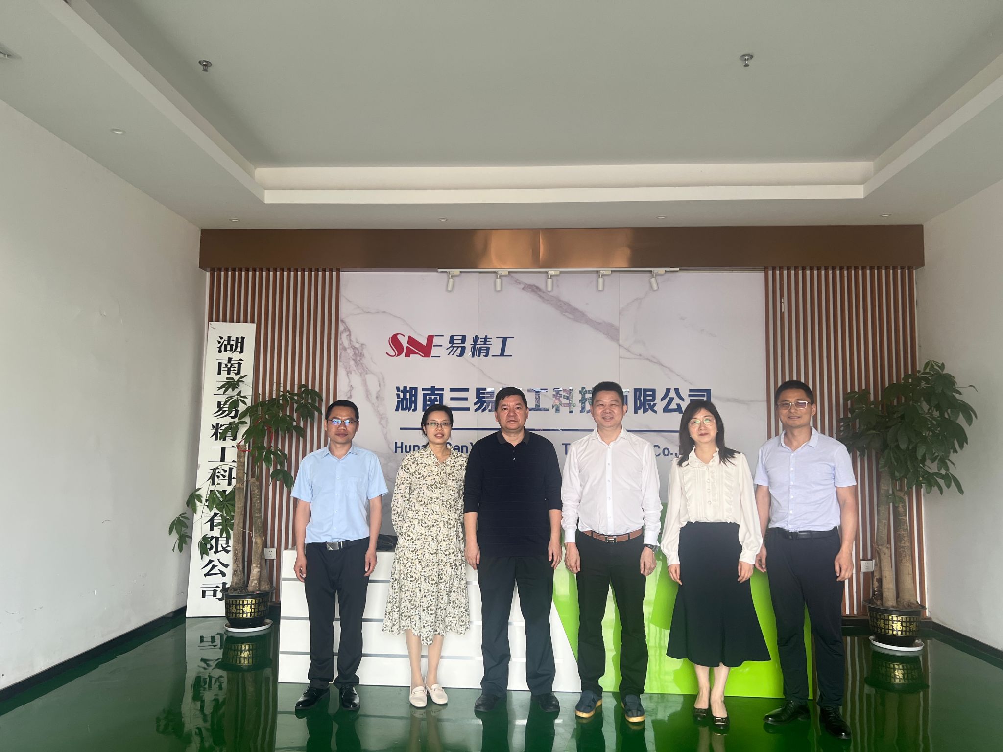 湖南三易精工科技有限公司总经理彭学秀对我院一行表示热烈欢迎,亲自带领参观了研发室、生产车间和检测室等。