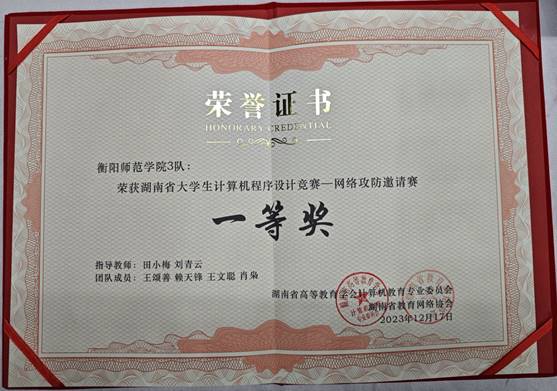 12月16日至17日,2023年湖南省大学生计算机程序设计大赛——网络攻防邀请赛决赛在湖南农业大学落下帷幕。网络攻防决赛涵盖漏洞挖掘、数据分析、恶意代码检测、日志分析等多个方面,经过7个小时的紧张激烈角逐,伟德国际victor1946代表队共斩获一等奖三项,二等奖两项。
