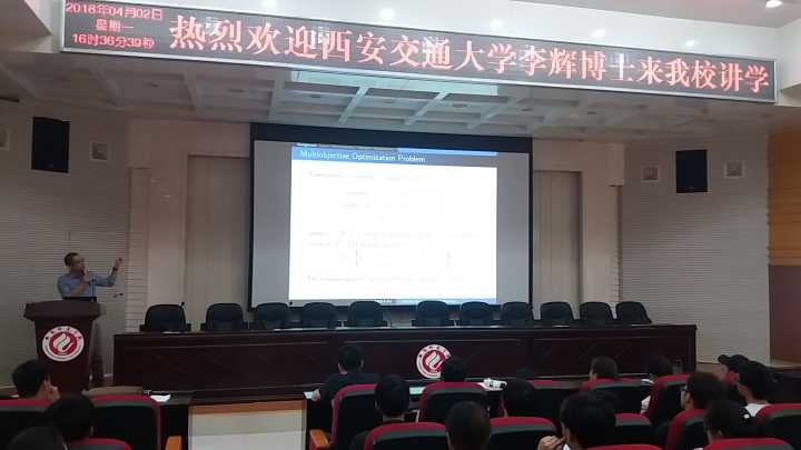 4月2日下午16:30在外语楼311报告厅,西安交通大学数学与统计学院科学计算系系主任李辉博士应邀为我校师生作了题为“MOEA/D算法若干焦点问题综述”的学术报告。报告会由我校伟德国际1946副院长陈坚祯教授主持。